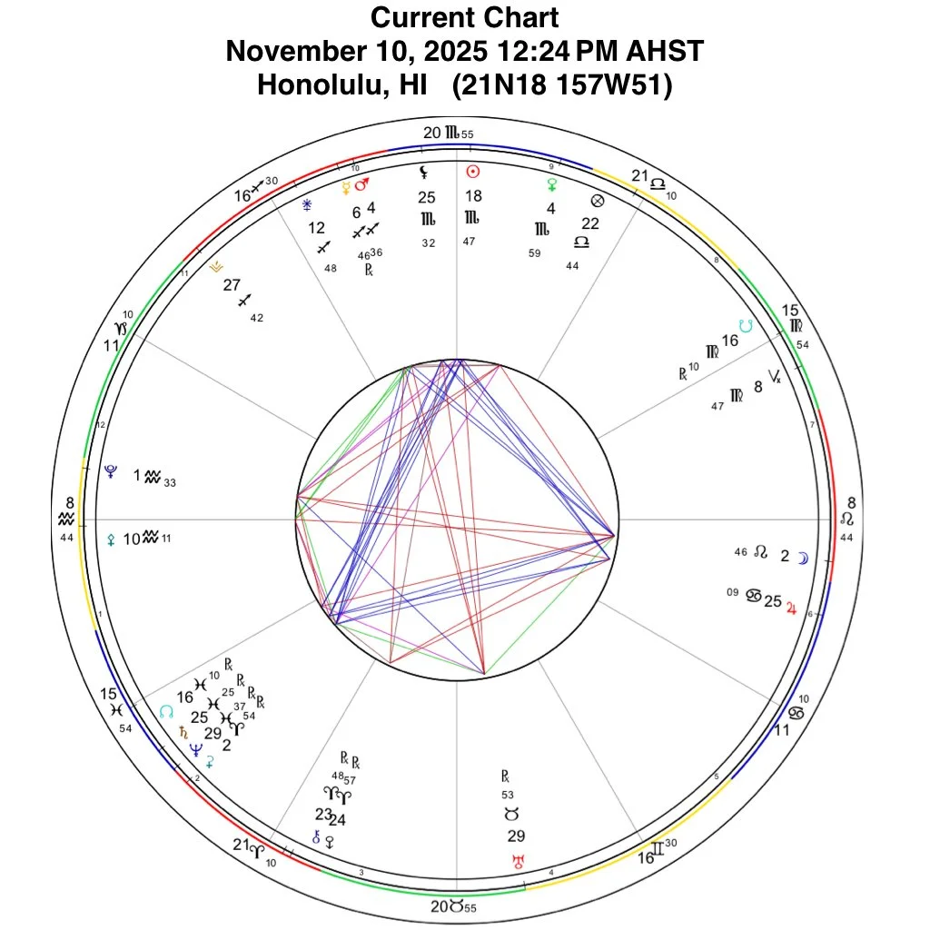 Jupiter goes RX in Cancer next on Tuesday, and this is at 25° Cancer-so see where in your chart that is and think back to what Jupiter has been highlighting and amplifying for you since it ingressed Cancer June 9. Jupiter will be retrograde until MARCH 11, 2026 when he goes direct at 15° Cancer. Issues around home, security, comfort, food, housing, and mothers/children, the homeland will be activated.